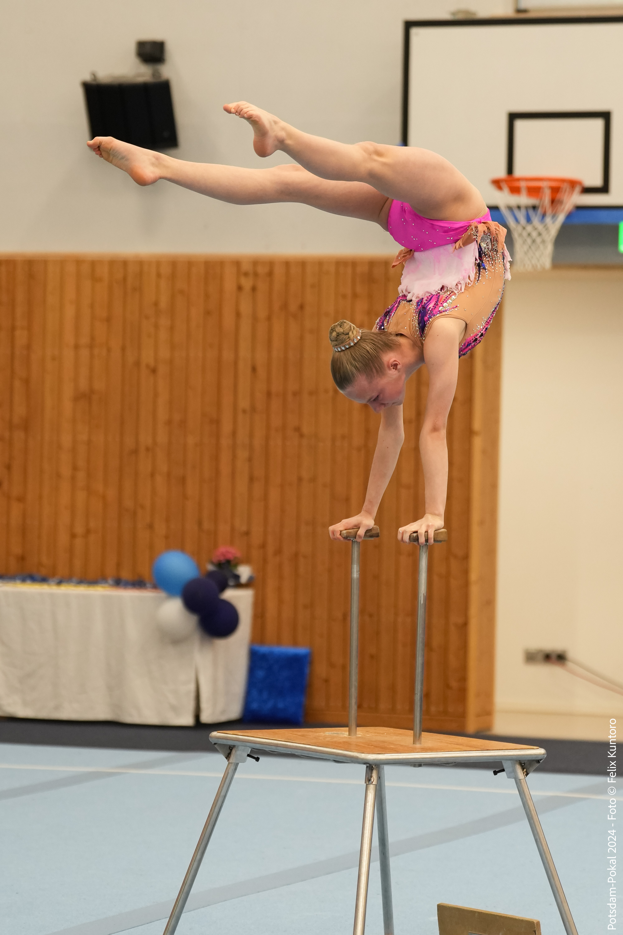 - mehreren akrobatischen Elementen, die balanciert oder (ab)geworfen werden